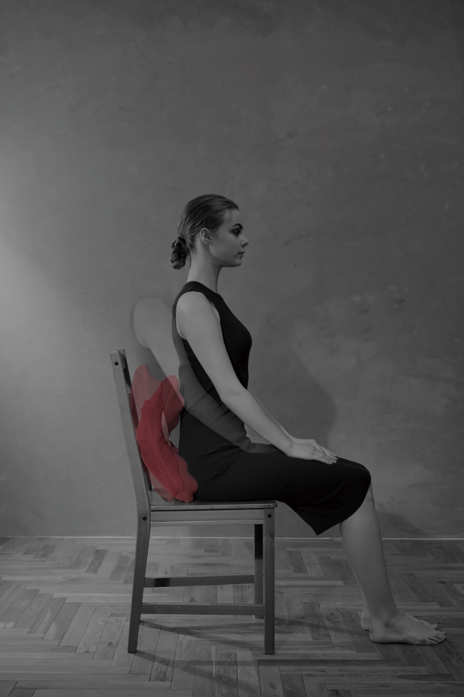 ・背中: 広背筋を広く伸ばし、ほぐすようにマッサージ。体重をかけると、サスペンションのパワーも加わって、しっかりとしたもみ感になります。