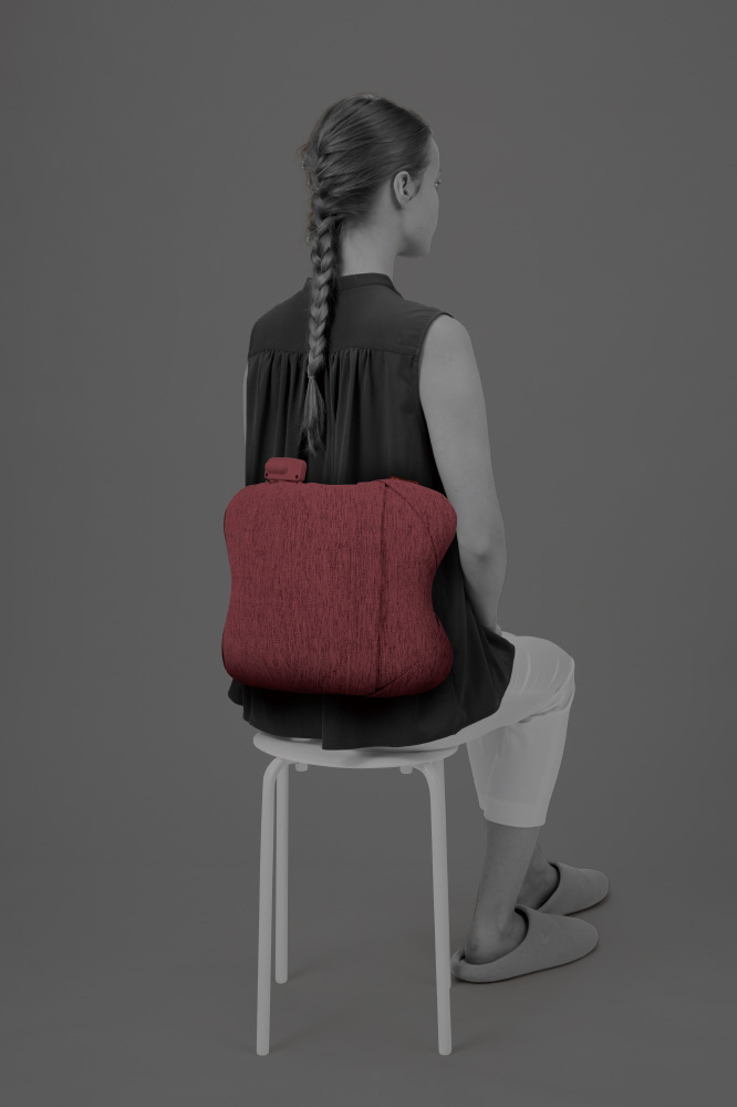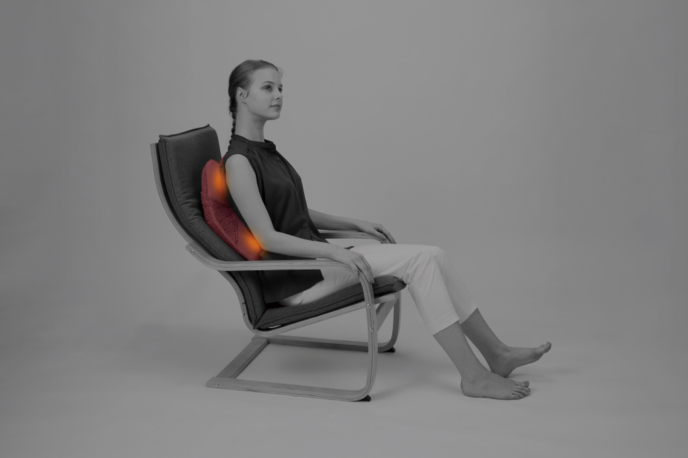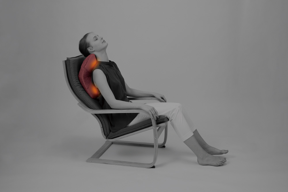 肩〜肩甲骨まわり: クッション型でありながら肩までしっかりマッサージ。肩の上からグッと、同時に肩甲骨のまわりまで心地よくほぐします。