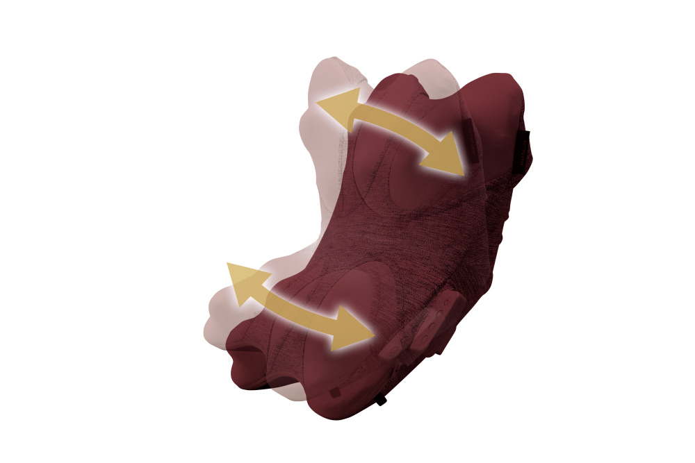 体重をかけるとグッと広がり、しっかりとコリをとらえるサスペンション構造。コーナーまで張り出した8つのもみ玉と組み合わせることで、今まで届きにくかった肩口やおしりまわりまでしっかりもみほぐします。