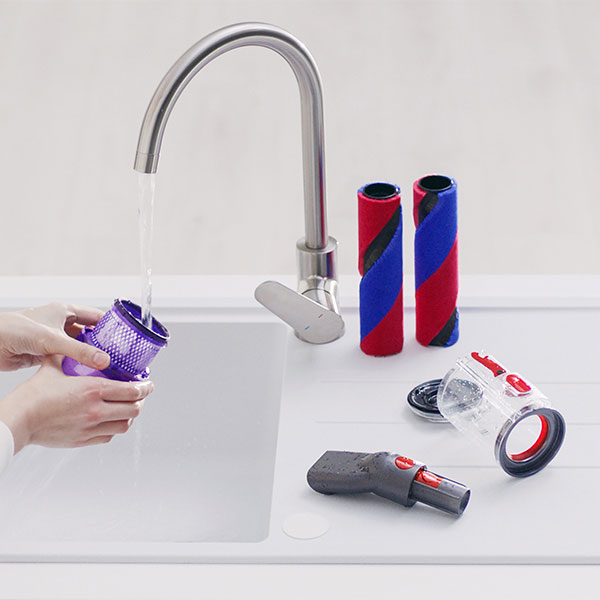 フィルターやブラシバーは簡単に取り外せて水洗いが可能です。