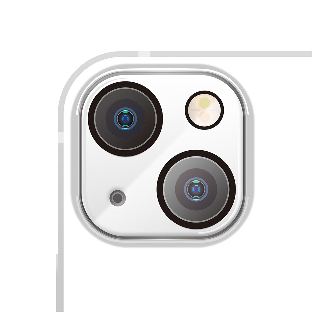 2021年 iPhone 6.1inch デュアルカメラ用のカメラレンズを守るプロテクターです。カメラレンズプロテクターは光線透過率96%の表面硬度9H光沢ガラスと薄くて耐久性に優れたポリカーボネイトで端末本体のレンズ周りまでキズを付けず、美しくカメラレンズを守ります。貼り付け時に便利なクリーニングクロス・ほこり取りシール付き。