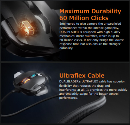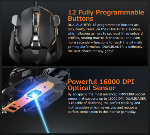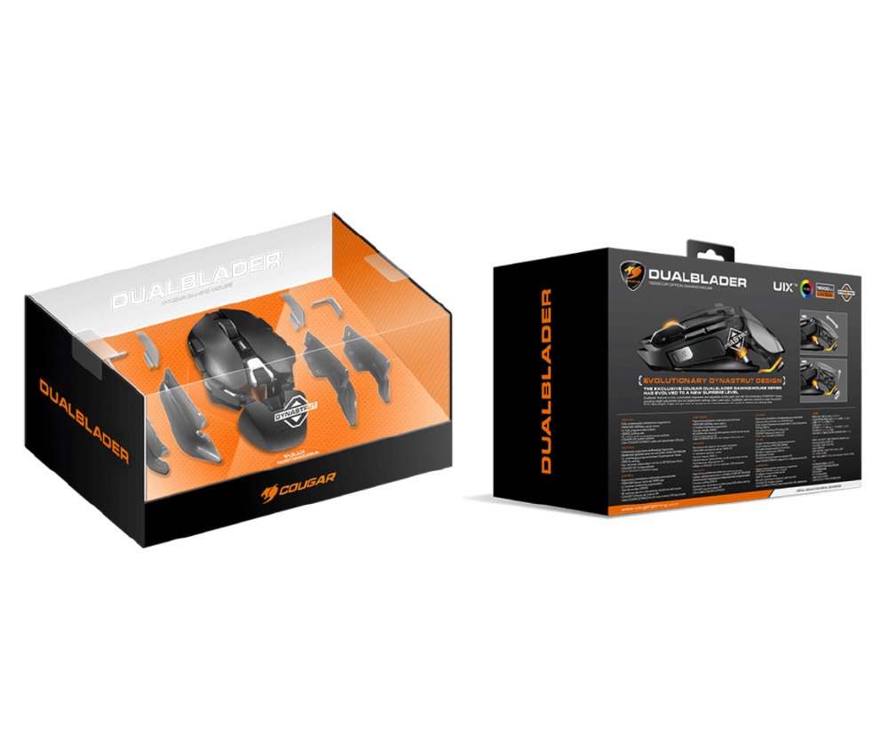 交換可能なサイドグリップ (大/小) が2セット、取り外し可能なボタンが4つ、パームレストが2つあります。ゲーマーはこれらのコンポーネントを使用して、必要なものやフィットするものを最適に設定できます。さらに、COUGARはDUALBLADERのサイドグリップやボタンのオープンソース3 Dファイルをサポートしており、DIYERはこれらの3 Dファイルをダウンロードし再設計すれば独自のフォームを作成することがでできます。