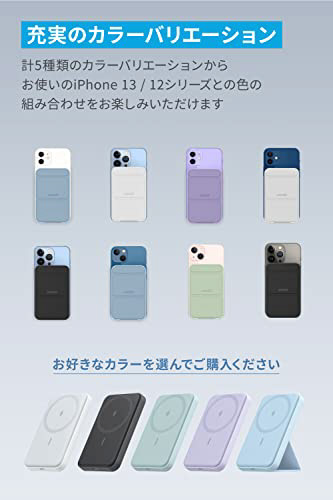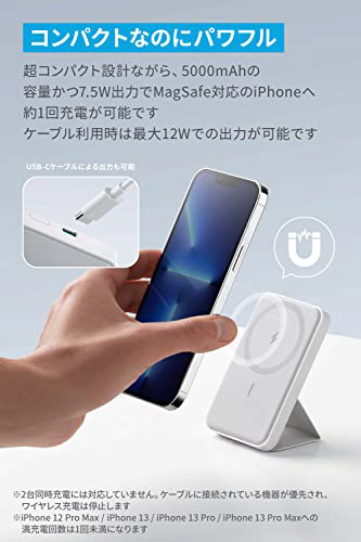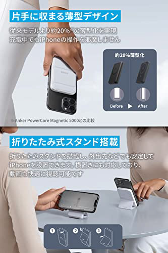 強力マグネットでピタッとくっつく。折りたたみ式スタンド搭載のマグネット式ワイヤレス充電対応モバイルバッテリー