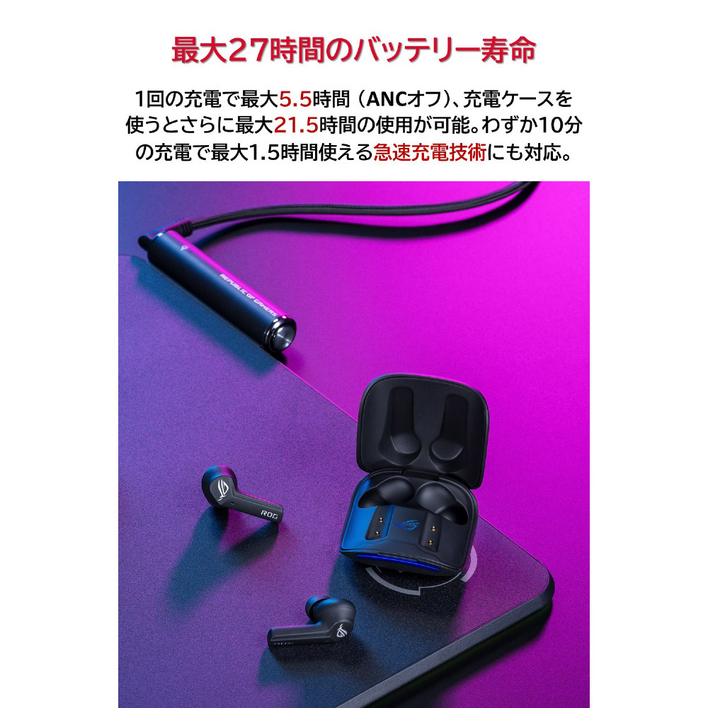 ROG Cetra True Wirelessゲーミングヘッドフォン、低遅延Bluetoothイヤホン、アクティブノイズキャンセリング、27時間のバッテリー寿命、IPX4防水