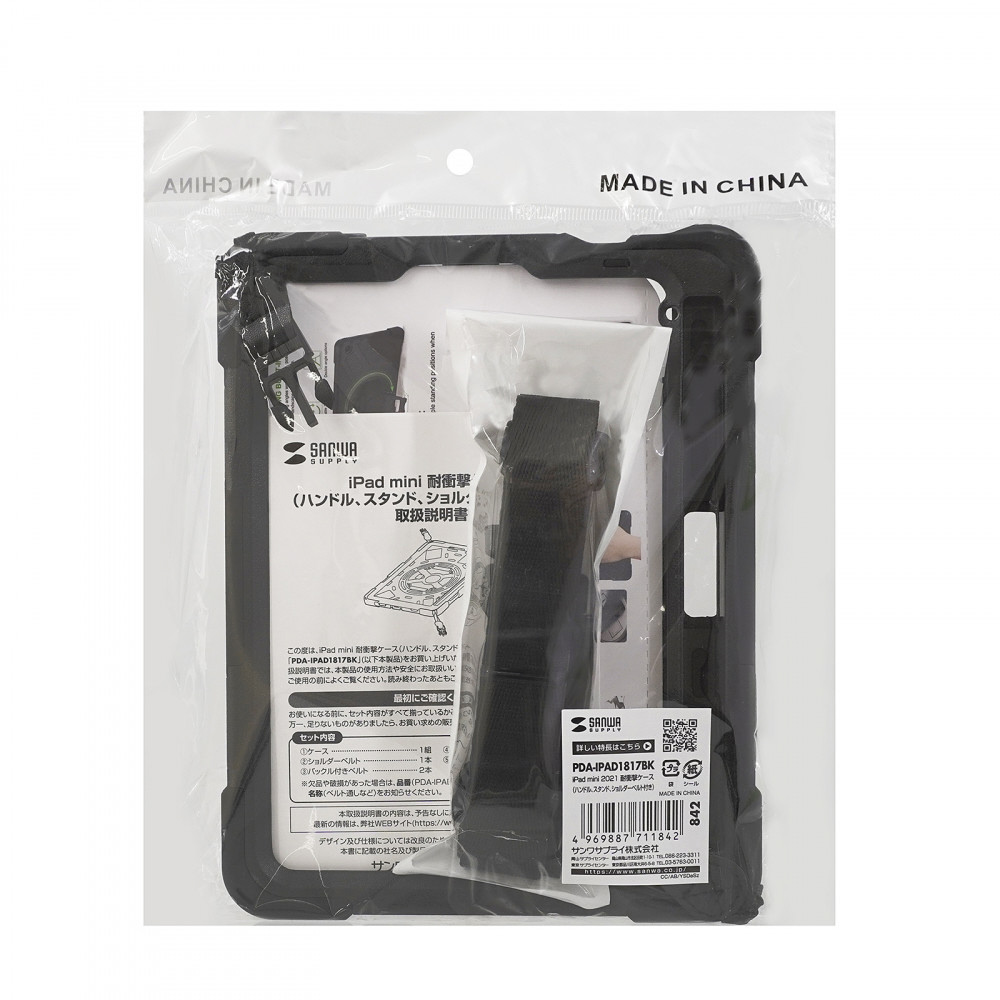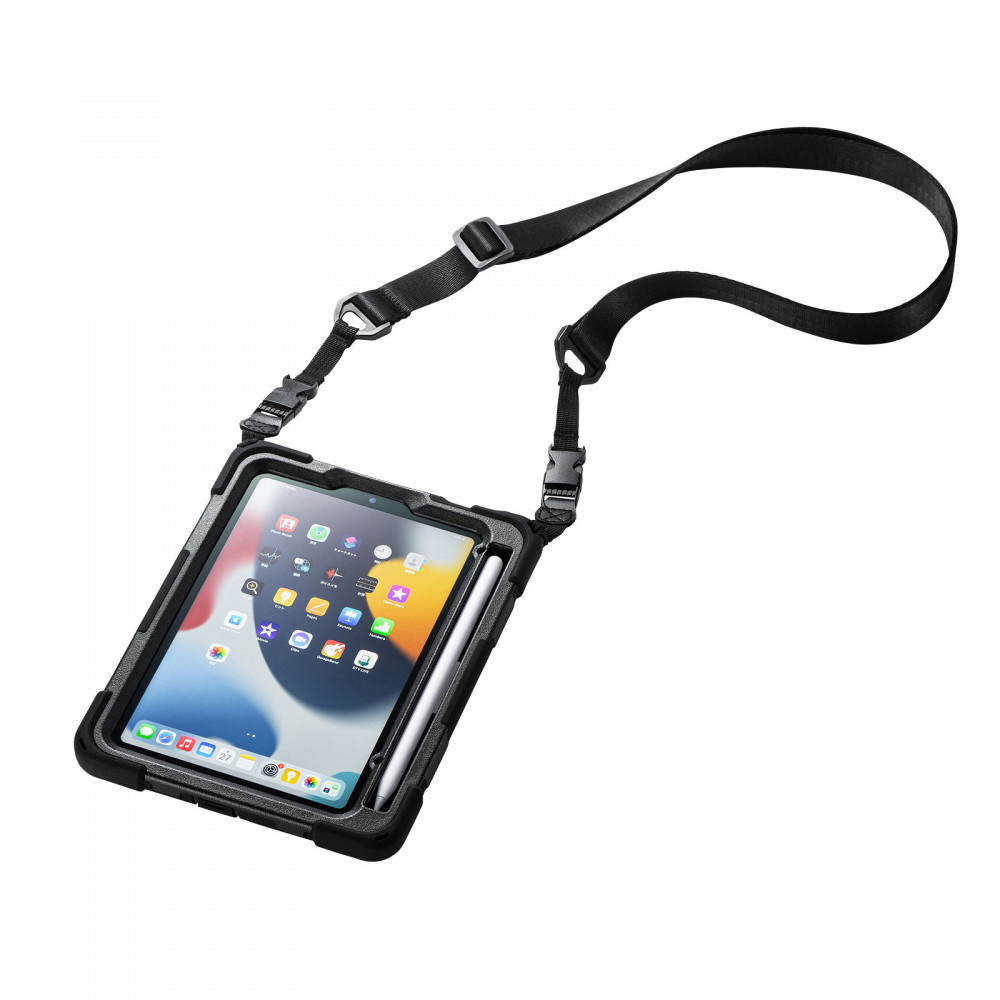 iPad mini(第6世代)用 耐衝撃ケース(ハンドル、スタンド、ショルダーベルト付き)   PDA-IPAD1817BK