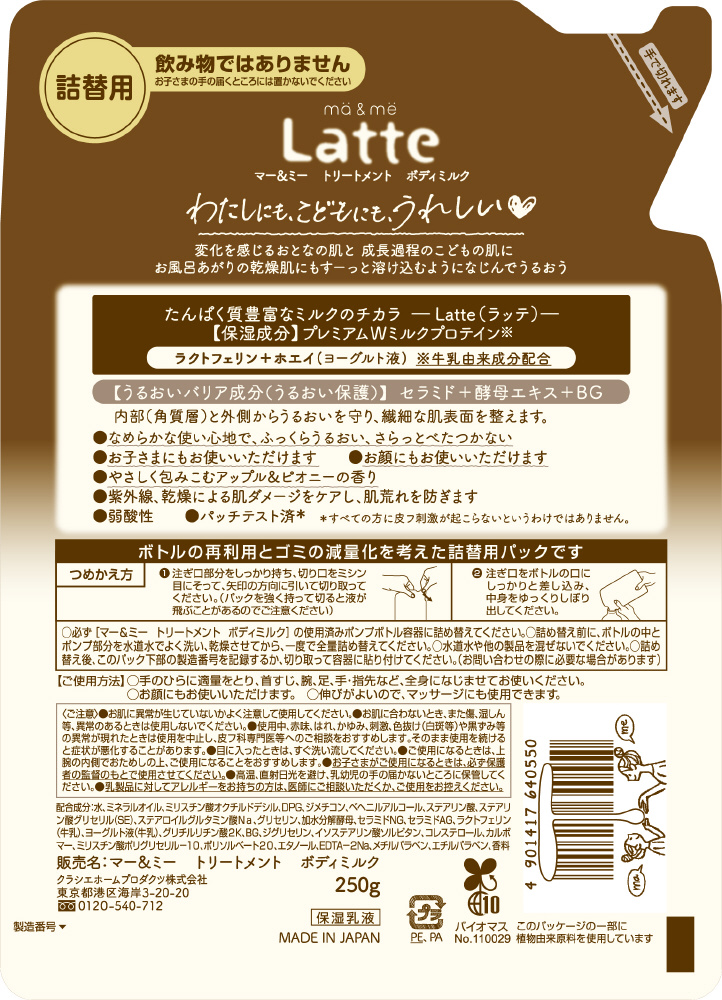 | 商品名 | マー&ミー トリートメント ボディミルク 詰替用 250g |