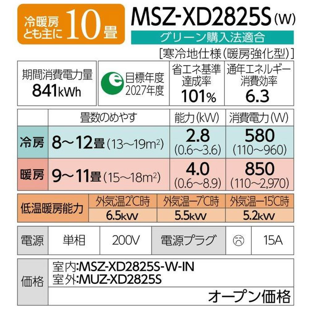 エアコン 2025年 ズバ暖 霧ヶ峰 XDシリーズ ピュアホワイト MSZ-XD2825S-W [おもに10畳用 /200V /極暖・寒冷地仕様] 【買い替え5000pt】【プレミアム工事対象】
