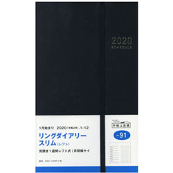 2020年版1月始まり リングダイアリー スリム(レフト) 黒 No.91 [ウィークリー /A5 /月曜日始まり]