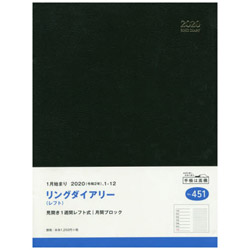 2020年版1月始まり リングダイアリー(レフト) 黒 No.451 [ウィークリー /A5 /月曜日始まり]