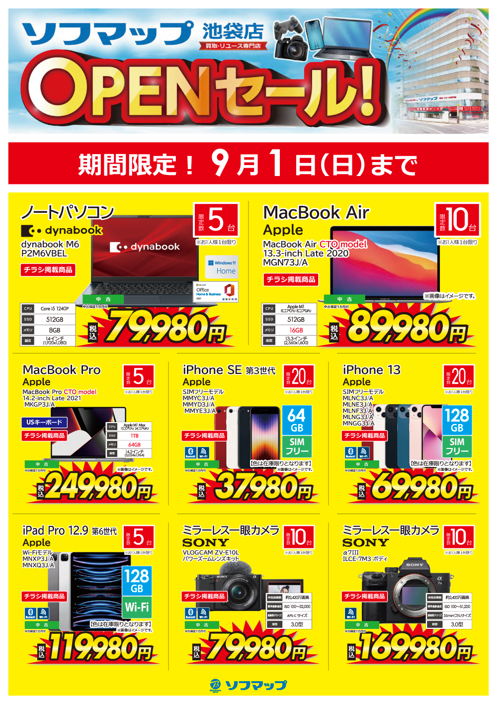 期間限定9月1日(日)まで!ソフマップ池袋店オープンセール開催中!