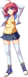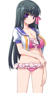 こん○○わわわ!CLOCKUPです!ビーチクビーチは皆様プレーしていただけましたでしょうか? 青い海、白い砂浜、真っ赤な太陽が眩しい南の島で展開する素敵ストーリーなので、 蒸し暑い部屋でパンツ一丁になりながら遊んでいただけると大変雰囲気が出て良いと思います。 日本の夏はアフリカの人でもバテるといいますしね、 クーラーなどで対抗するよりもゲームの演出の一つとして受け入れてしまう方が、 電気代がかからなくていいんじゃないでしょうか。 さて、最近のCLOCKUP社内はというと、「ビーチクビーチ」の開発が終わってマスターアップ休暇……んなわけあるかーい! 引き続き「黄昏に煌く銀の繰眼」の作業が黙々と進んでおります。 そんな口を一文字に結んでひたすら進み続ける状況なものですから、段々生活も単調になってきたりとかしましてですね、 最近は食事に出ても「今日なににするー?」「マック? やよい軒? すた丼? 屯ちん?」みたいな状況でとにもかくにも生彩を欠く! せめて雁川(※秋葉原の中華屋)の夜定食くらいのバリエーションが欲しいょ……。 そういえば先日、エロマンガでメシを食っている友人と喋っておりましたら「おまえんトコで作ってる、『黄色なんとか』っていう新作だけどさぁ」なんて言われてしまいましたが、ゼヒとも「繰眼(くがん)」と略してください。 そんな訳で、実は10人も居る「黄昏に煌く銀の繰眼」のヒロイン紹介も今週でなんと4人目!