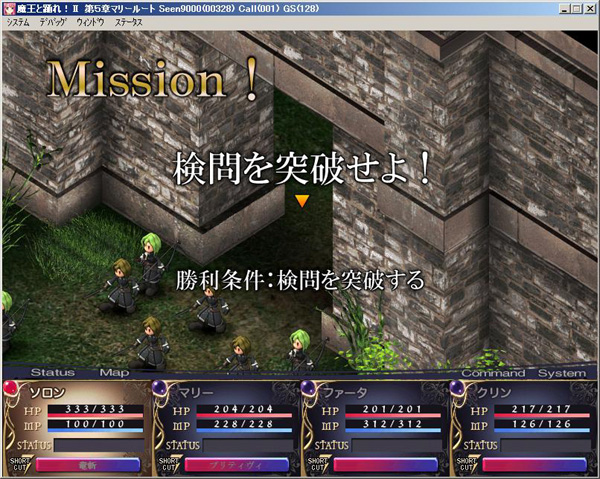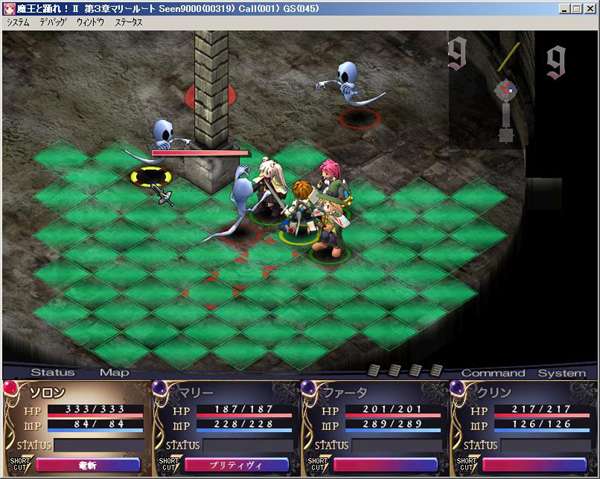 あけましておめでとうございます……って、もう1週間以上過ぎている〜!(汗)ずっと『魔王と踊れ!2』のテストプレイをしていて気がつかなかった桜沢です。 苦節○年、制作を続けておりました魔王2も、ようやく完成間近となっております。このテキストが掲載される頃には、マスターアップのお知らせが出てきている……といいな(汗)。 クラスチェンジや仲間のオートバトルなど、新しい要素盛りだくさんとなっておりますので、ぜひとも体験版をおためし下さい。 公式サイトでは、RPG部分の操作を体験する「ダンジョン体験版」と1章を遊ぶことが出来る「1章体験版」を公開しております。 操作に慣れながら徐々に仲間が増えていく仕様となってますので、1章では、マリーとのふたりの冒険が楽しめます。 スキルを習得する場面もありますので、ゲーム全体の雰囲気は体験できると思います。 また、便利な操作や攻略のヒントなどを解説した「教えてアセイミー先生」という記事もHPで連載中でので、そちらも合わせてお楽しみ下さい。 それでは、完成まで頑張ります! catwalk 桜沢氏 2009/1/15