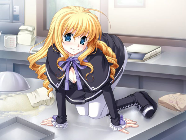 制服の絶対領域が眩しい洋菓子店「十月桜」のパティシエ。前パティシエ兼店主であった父が亡くなってしまい、 「十月桜」を取り仕切っている姉。 制服の絶対領域から覗くふとももが眩しいです。